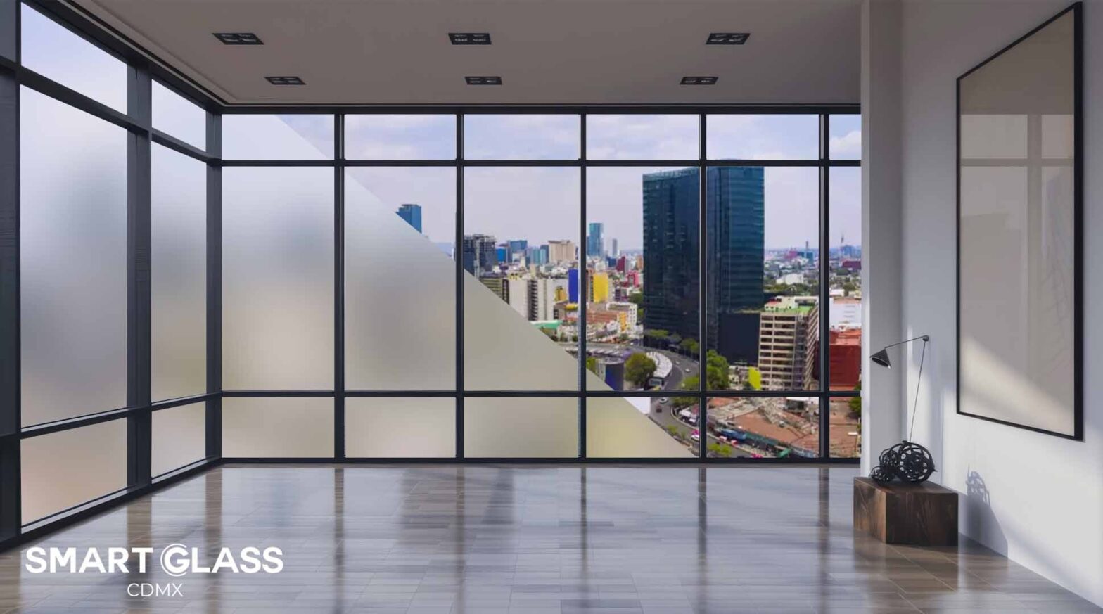 Oficinas modernas en CDMX con Smart Glass: privacidad, ahorro energético y diseño profesional con tecnología inteligente.